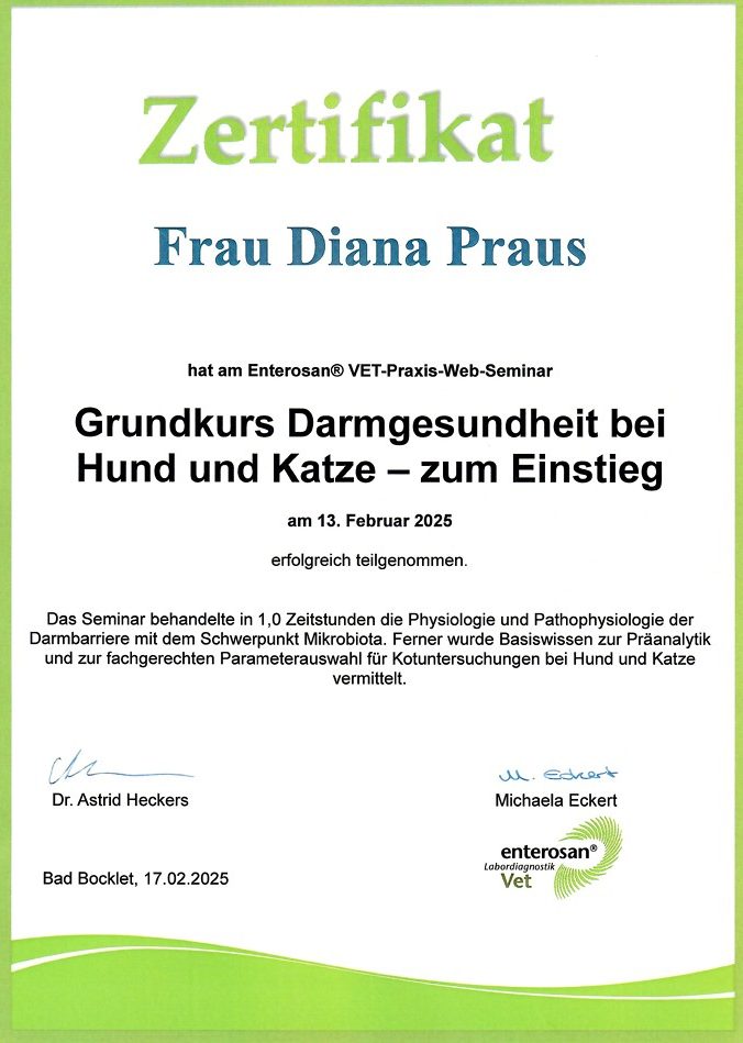 Diese Weiterbildung beim Enterosan-Labor behandelte die zentrale Rolle der Darmschleimhaut beim Hund.